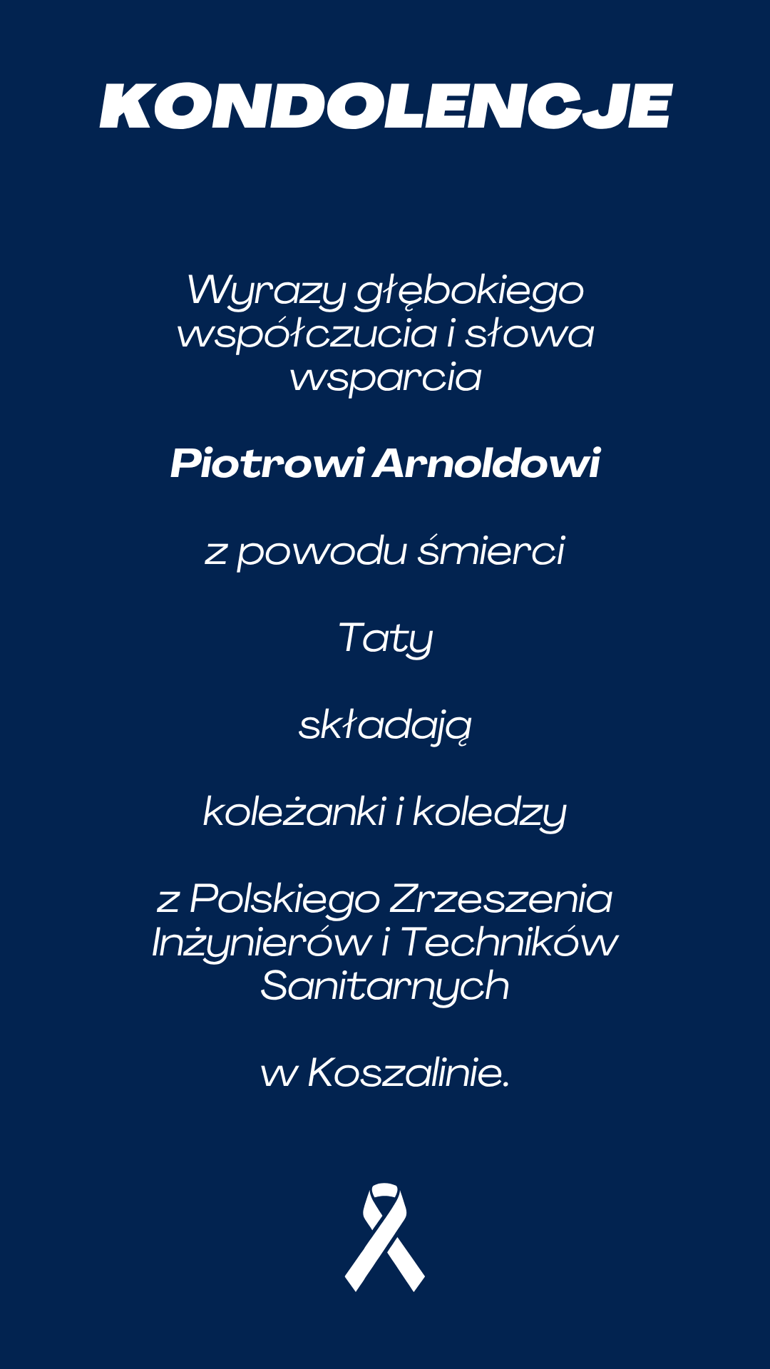 Ceremonia pogrzebowa rozpocznie się 16 kwietnia 2026 roku o godzinie 13.00 w kaplicy na Cmentarzu Komunalnym w Koszalinie.