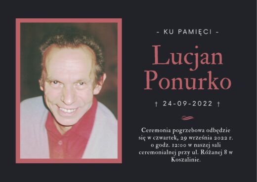 Ceremonia pogrzebowa rozpocznie się 15 września 2022 roku o godzinie 11.30 w Kaplicy na Cmentarzu Komunalnym w Koszalinie.