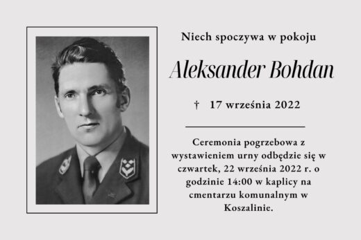 Ceremonia pogrzebowa z wystawieniem urny odbędzie się w poniedziałek, 3 października 2022 r. o godzinie 12:00 w kaplicy na cmentarzu komunalnym w Koszalinie.